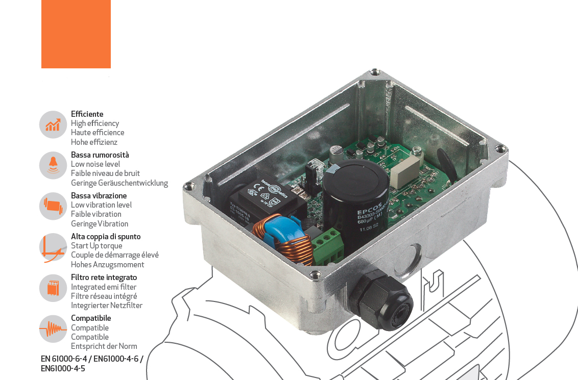 La solution simple et économique qui révolutionne les performances du moteur monophasé. Il s’agit d’un inverseur dédié situé à l’intérieur d’un bornier qui permet d’utiliser des moteurs asynchrones triphases à la place de moteurs monophasés.